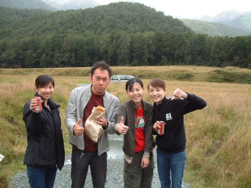 不過天公不作美,適逢紐西蘭百年難得一件的大雨。雖然我們的路線上沒有洪水或土石流(都留給北島去鬧了),但是不時的大雨以及 隨之而來的冷風還是免不了的。幸好本團的特色就是吃喝拉撒睡,每天早餐時一定會問一句「今天晚上吃什麼」。情勢所逼,雷蒙也破天荒首次(應該也是最後一 次)一團內下除做了兩次晚餐,補償大家天氣所帶來的不足。